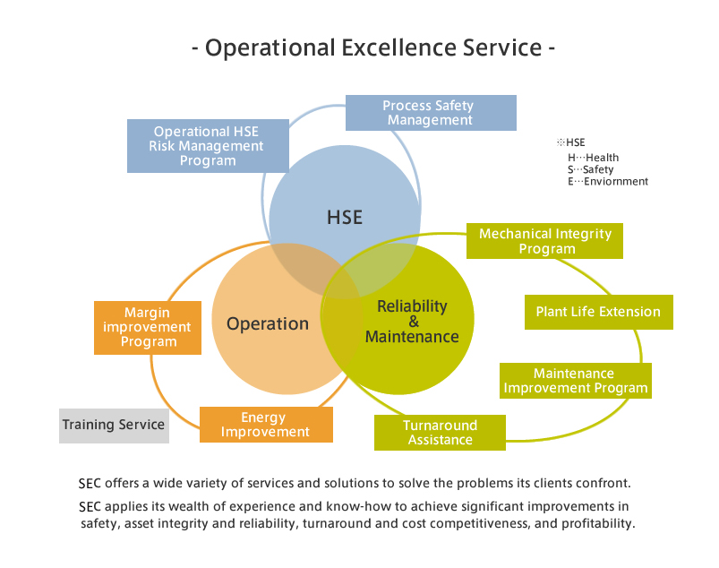 Operations & MaintainanceMaintaining safety and reliability while maximizing profit are the core goals of plant operations. To realize this, Standard Engineering offers wide-ranging O&M (operation and maintenance) services for all project stages, from feasibility studies through FEED, EPC and commercial operations.